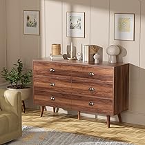 Amazon Com Lynsom Dresser For Bedroom Mid Century Modern Dresser With 6 Wide Drawers And Metal Handles Wood Storage Chest Of Drawers For Living Room Hallway Entryway Walnut Home Kitchen